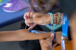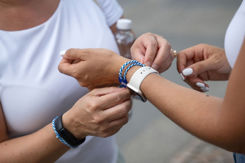Alle, die an einem der Lozärn verbonde-Events teilgenommen haben, erhielten eines der exklusiven blau-weissen Armbänder - angefertigt von der Stiftung Brändi. Viele suchten sich vor Ort jemanden, der ihnen beim Anziehen half, und waren so mit einer Person verbunden, die sie vorher vielleicht gar nicht gekannt hatten .Wir hoffen, ihr hattet viel Spass.